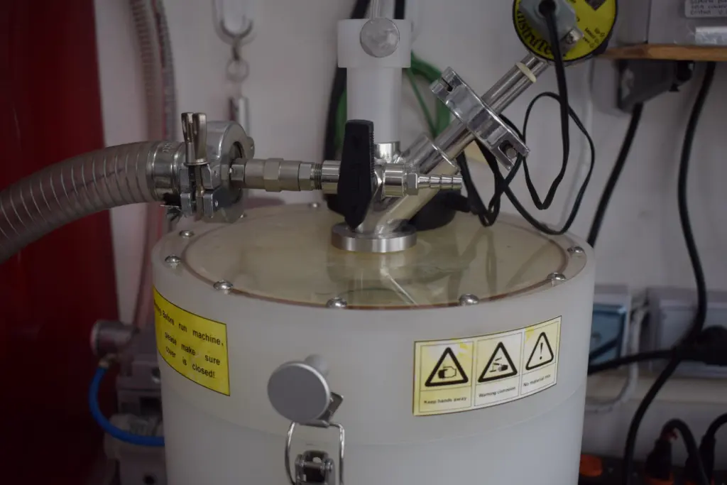 El “Spin Coating” de Atmósfera Controlada es un equipo de laboratorio que combina la técnica de recubrimiento por centrifugación (“spin coating”) con un entorno ambiental regulado (como atmósfera inerte de nitrógeno o argón, o control de humedad/temperatura) para fabricar películas delgadas y uniformes en sustratos, crucial para materiales sensibles a la contaminación del aire, como los semiconductores orgánicos o tipo perovskitas, asegurando la pureza y el rendimiento del recubrimiento final. El sistema trabaja bajo condiciones de vacío con una bomba de prevacío mecánica conectada a la cámara y un abomba de membrana para ejercer presión negativa como sujetador del sustrato.